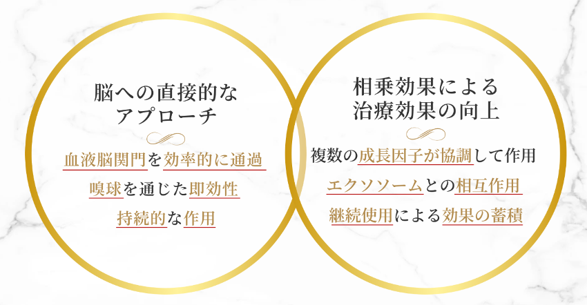 この2つのアプローチによって、脳を中心に「内側から全身の再生を促す」――これがエクソソーム点鼻薬の最大の特徴です。