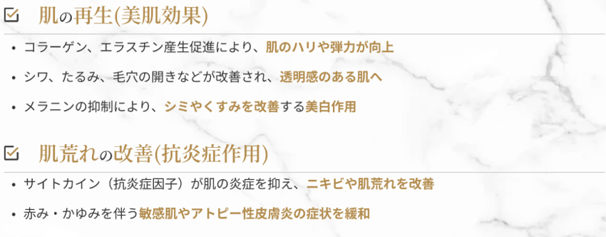 肌:ターンオーバーの正常化、ハリ・ツヤの回復