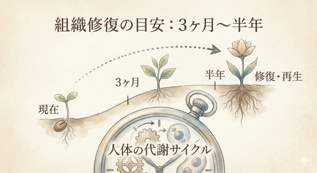 組織修復による効果・・・3ヶ月から半年が目安