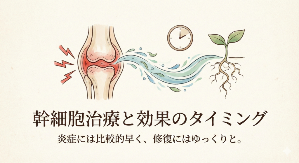 幹細胞治療を検討されている方にとって、「いつから効果が出るのか」は最も気になる点ではないでしょうか。